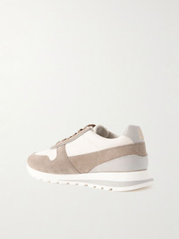 Brunello Cucinelli's 'Olimpo' sneakers are inspired by running shoes with their streamlined shape. They've been made in Italy from full-grain leather and soft suede - both add texture in an artful counterplay. Size & Fit - Fits true to size. Take your normal size - European sizing Details & Care - Taupe suede, off-white and grey leather (Calf) - Lace-up - Style number: MZUESLA289CZZ12
