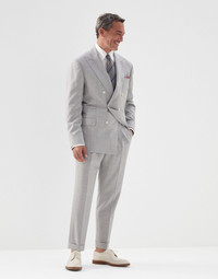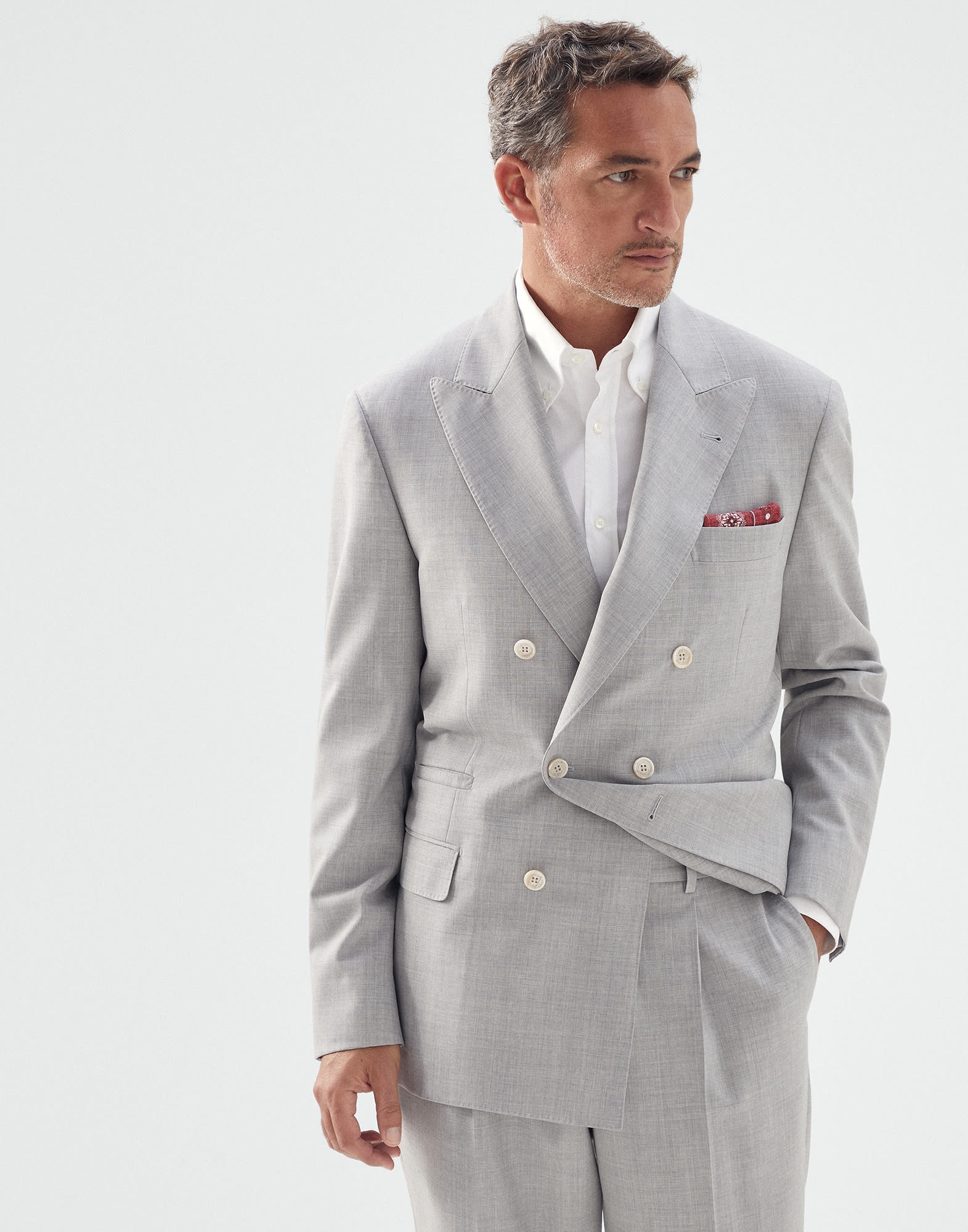 A must-have menswear piece, this one-and-a-half-breasted blazer is given a lightweight, stylish look from its Natural Comfort virgin wool fabric. The fit follows the proportions that distinguish Brunello Cucinelli style: close-fitting through the chest with slightly pronounced shoulders to highlight the male physique. MATERIALS “Natural comfort” virgin wool is a very comfortable and versatile refined fabric that is ideal to wear at different times of the year thanks to the superior qualities of the natural fiber. DETAILS Horn button closure Welt pockets with flap, ticket pocket and chest pocket Cuffs with horn buttons Cupro half lining Two interior pockets with button closure and pen holder Double back vent 100% VIRGIN WOOL