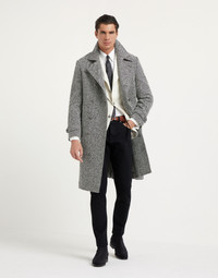 The excellence of Brunello Cucinelli materials enriches the refined feel of this one-and-a-half-breasted coat. The warmth of pure virgin wool is delivered in a chevron fabric inspired by the world of tailoring. The distinct metal button closure completes the garment, which offers a regular, boxy fit. MATERIALS The pure virgin wool chevron pairs high-quality materials and traditional patterns of masculine elegance to create a fabric with sophisticated traits. The cupro lining provides added comfort. DETAILS Metal button closure Lapel collar Vertical hand pockets Adjustable button cuffs Single back vent Cupro half lining Two interior pockets with button and pen holder 100% VIRGIN WOOL