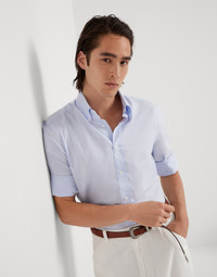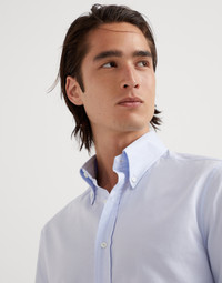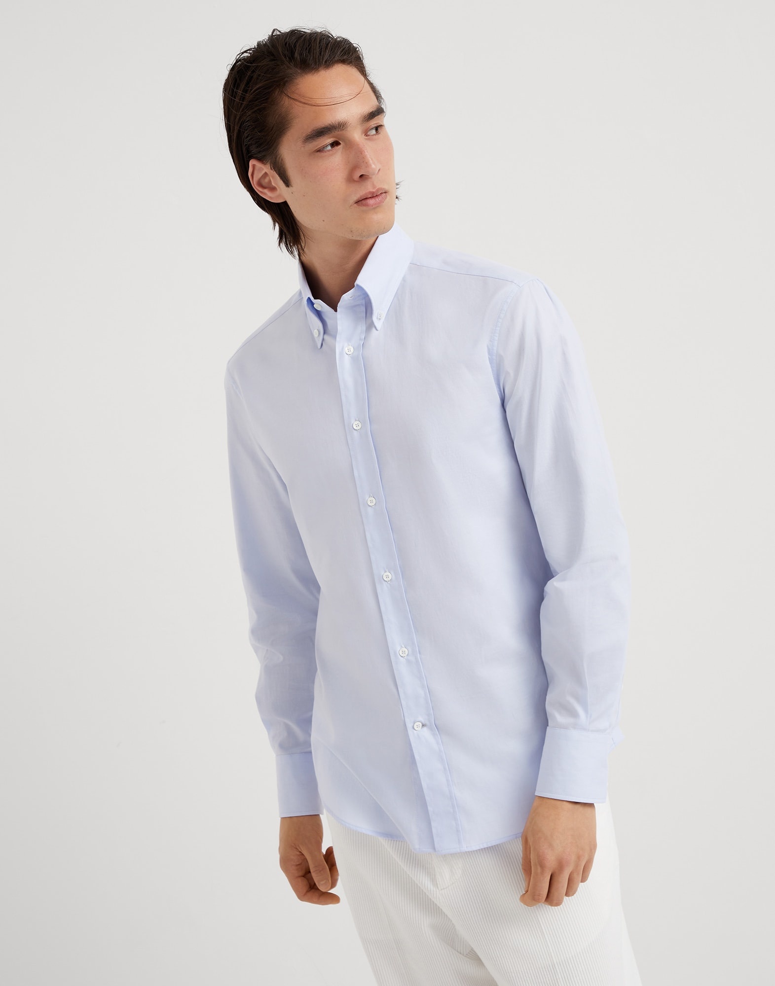 The freshness of cotton Oxford updates the classic feel of this button-down collar shirt. The slim fit remains close to the body to highlight the male physique. MATERIALS A classic men's shirting fabric, pure cotton Oxford is compact and lightweight making it comfortable to wear throughout the year. DETAILS Placket closure with mother of pearl buttons Button-down collar Cuffs have two mother of pearl buttons Slim fit 100% COTTON