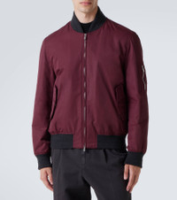 This padded bomber jacket from Brunello Cucinelli masterfully balances design and function. Made from water-resistant fabric, this style features ribbed-knit cashmere trims and a zipped front. Product Details - Material: 100% polyamide - Care instructions: dry clean - Made in Italy - Designer color name: Amaranto - Item color: burgundy, gray - Trim: 100% cashmere - Filling: 100% polyester - Lining: 100% nylon - Pocket lining: 100% cotton - Contains non-textile parts of animal origin - Closure: two-way zipped front - Pockets: angled chest pockets, sleeve pocket, internal pockets - Cuff: elasticated - Hem: elasticated - Item number: P01095088 Size & Fit - True to size - Straight fit - Elasticated hem - Non-stretchy fabric - Falls to the hip - Height of model is 187cm-73.5" and wears a size IT 50