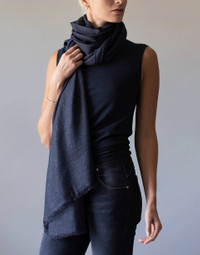DETAILS AND INSIGHT Brunello Cucinelli paillette scarf in midnight. 70% Cashmere, 30% Silk, 100% Paillettes 72 x 38" Hand Wash Made in Italy Style MSC915029-C7186
