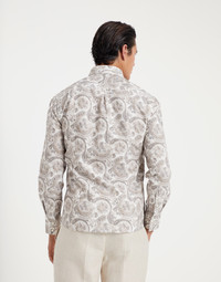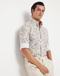 The season’s refined colors enrich this button-down collar shirt in cotton paisley with a casual feel. Close-fitting lines through the chest define the slim fit. MATERIALS The Paisley pattern is paired with the light feel of cotton and stands out on the summer fabric in an elegant two-tone print delivered in the season’s colors. DETAILS Placket closure with mother of pearl buttons Button-down collar Cuffs have two mother of pearl buttons Slim fit 100% COTTON