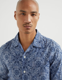 This easy fit pure cotton twill shirt expresses a natural, relaxed elegance, enhanced by refined yarns and a touch of character and originality. The classic silhouette is completed with a chest pocket and vintage-inspired camp collar, combined with the Paisley pattern, enriching the lightweight, comfortable fabric with the season’s colors. Defined by its regular, rather straight lines, the easy fit has a slightly shorter length than other fits, making it perfect to wear over trousers for a casual look. MATERIALS Dyed in the season’s colors, the pure cotton twill is a lightweight, comfortable fabric that is perfect to wear year-round. DETAILS Plain front closure with mother of pearl buttons Camp collar Patch chest pocket Cuffs have one mother of pearl button Easy fit 100% COTTON