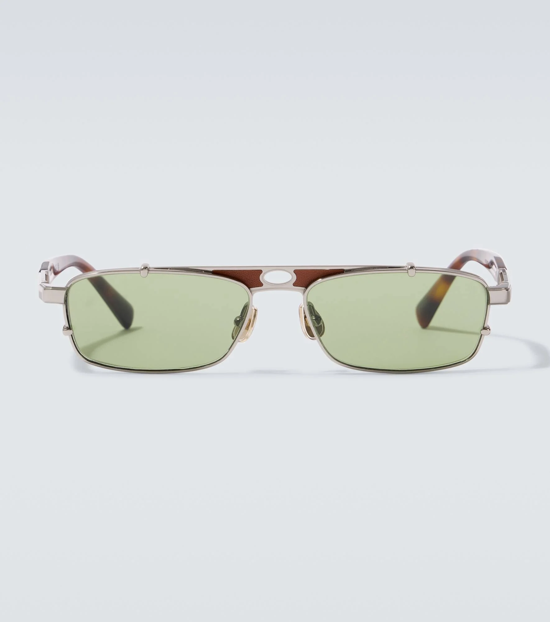 Defined by their leather insert, the Paloma rectangular sunglasses are retro-inspired and offer a sleek, effortlessly cool look. A fine laser engraving on the inside of the temples finishes the look. Product Details - Frame material: metal - Frame color: silver - Lens filter category 3 - Lens color: green - Made in Italy - Includes: hard case - Item number: P01041230 Size & Fit - Lens width: 55mm-2.15" - Bridge size: 15mm-0.6" - Earpiece length: 145mm-5.7"