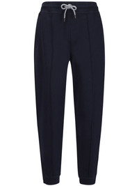 tapered track pants Highlights - Midnight blue - Cotton-cashmere-silk blend - Elasticated drawstring waistband - Two side welt pockets - Two rear welt pockets - Tapered leg - Ribbed cuffs Made in Italy Composition Cotton 64%, Polyamide 26%, Cashmere 6%, Silk 4%