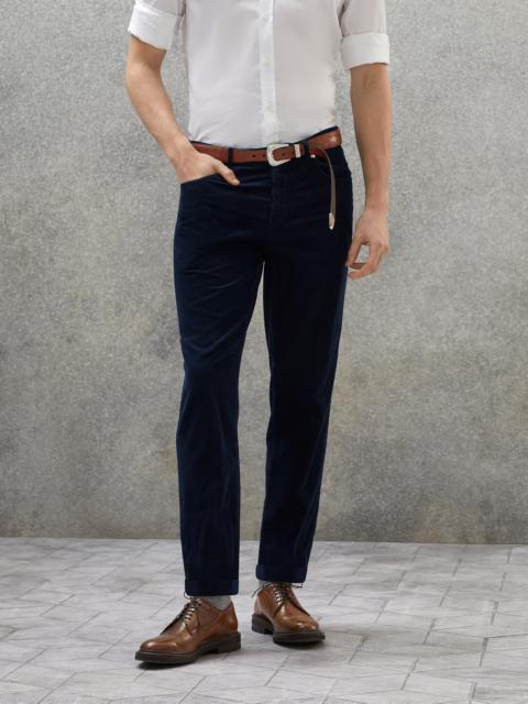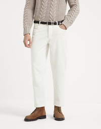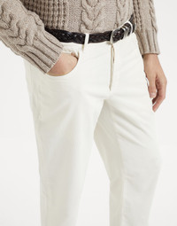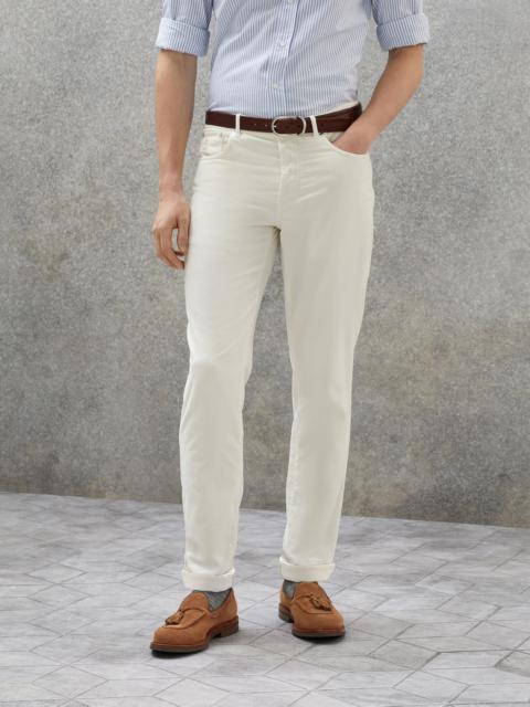Garment-dyed Italian fit five-pocket trousers in cotton narrow wale corduroy