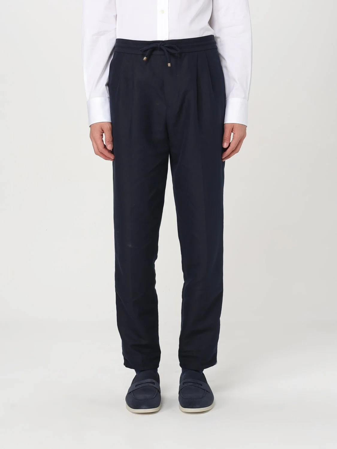 DESCRIPTION - Style: Basic, Casual - Pockets: America - Waist: Stretch waist with drawstrings, Medium waist - Bottom: With straight hemline - Materials: Linen, Cotton - Pattern: Plain-colored DETAILS AND CARE Composition 56% linen, 44% cotton SIZE AND FIT Sizes not available Size and fit Regular fit Designer code: MH255E1710 C2485 Giglio Code: G50075 Designer: Brunello Cucinelli Collection: Brunello Cucinelli Men Category: Clothing Brunello Cucinelli
