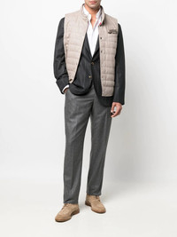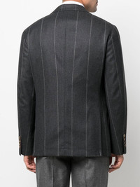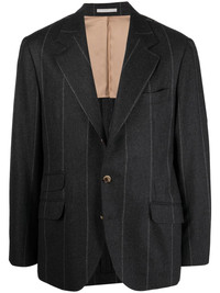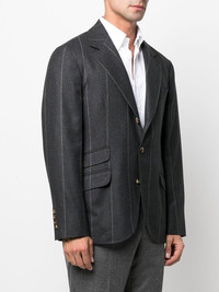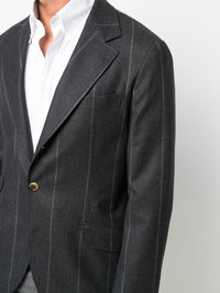 pinstripe-print single-breasted blazer dark grey/grey wool blend notched lapels front button fastening long sleeves curved hem chest welt pocket two side flap pockets Made in Italy Composition Lining: Cupro 100% Outer: Wool 89%, Silk 6%, Cashmere 5% SIZE & FIT Model measurements Height 6 ft 1 in(1.85 m) Bust/Chest 37.79 in(96 cm) Hips 37.4 in(95 cm) Waist 30.7 in(78 cm) FittingInformation This piece fits true to size. We recommend you get your regular size Cut for a slim fit Made with a mid-weight non-stretch fabric