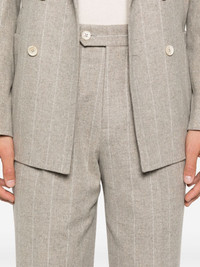 pinstriped suit Highlights - Taupe/white - Wool blend - Non-brushed fleece - Pinstripe pattern - Set of two Made in Italy Composition Outer: Wool 95%, Cashmere 5% Lining: Cupro 100%, Viscose 100% SIZE & FIT Model measurements Height 6 ft 1 in(1.85 m) Bust/Chest 35.82 in(91 cm) Hips 37.79 in(96 cm) Waist 29.13 in(74 cm) FittingInformation Tailored for a slim fit, offering a comfortable fit that sits just away from the body The unfinished hems allow for the length to be altered Made from a midweight non-stretch fabric