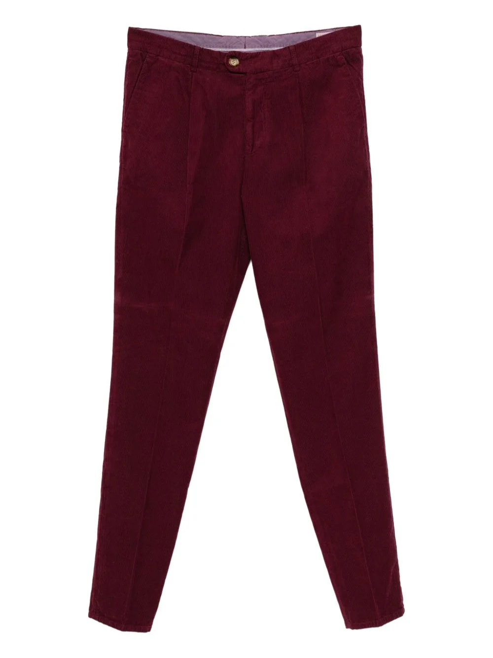 pleated corduroy trousers Highlights - Burgundy - Corduroy texture - Pleated front - Button fastening - Belt loops - Side seam pockets Imported Composition Cotton 100% SIZE & FIT Model measurements Height 6 ft 1 in(1.85 m) Bust/Chest 35.82 in(91 cm) Hips 37.79 in(96 cm) Waist 29.13 in(74 cm) Washing instructions Read Manufacturer Guidelines