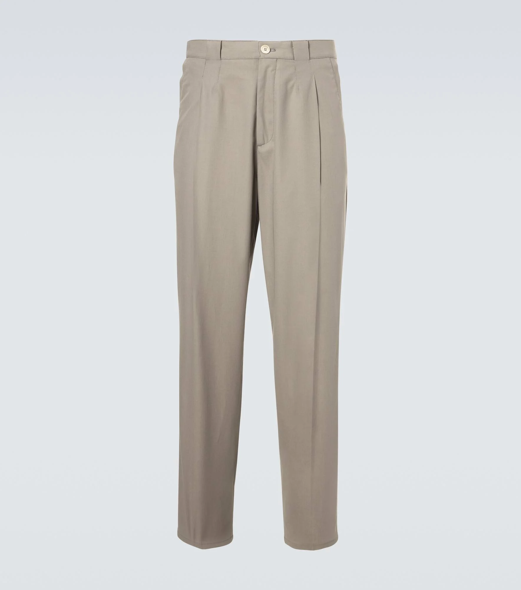 Brunello Cucinelli's designs are created in Solomeo, a medieval hamlet whose art and traditions are woven into the house's every fiber. These pants are crafted from pure cotton into a pleated, tapered-leg silhouette. Product Details - Material: 100% cotton - Care instructions: dry clean - Made in Italy - Color: green - Designer color name: Kaky New - Lining: 100% cotton - Lining II: 60% acetate, 40% cupro - Closure: zip and button fastening - Pockets: slant pockets, back pockets - Belt loops - Item number: P01138483 Size & Fit - True to size - Non-stretchy fabric - Straight leg - The model in the picture is 185cm-6'1" and wearing a size 50