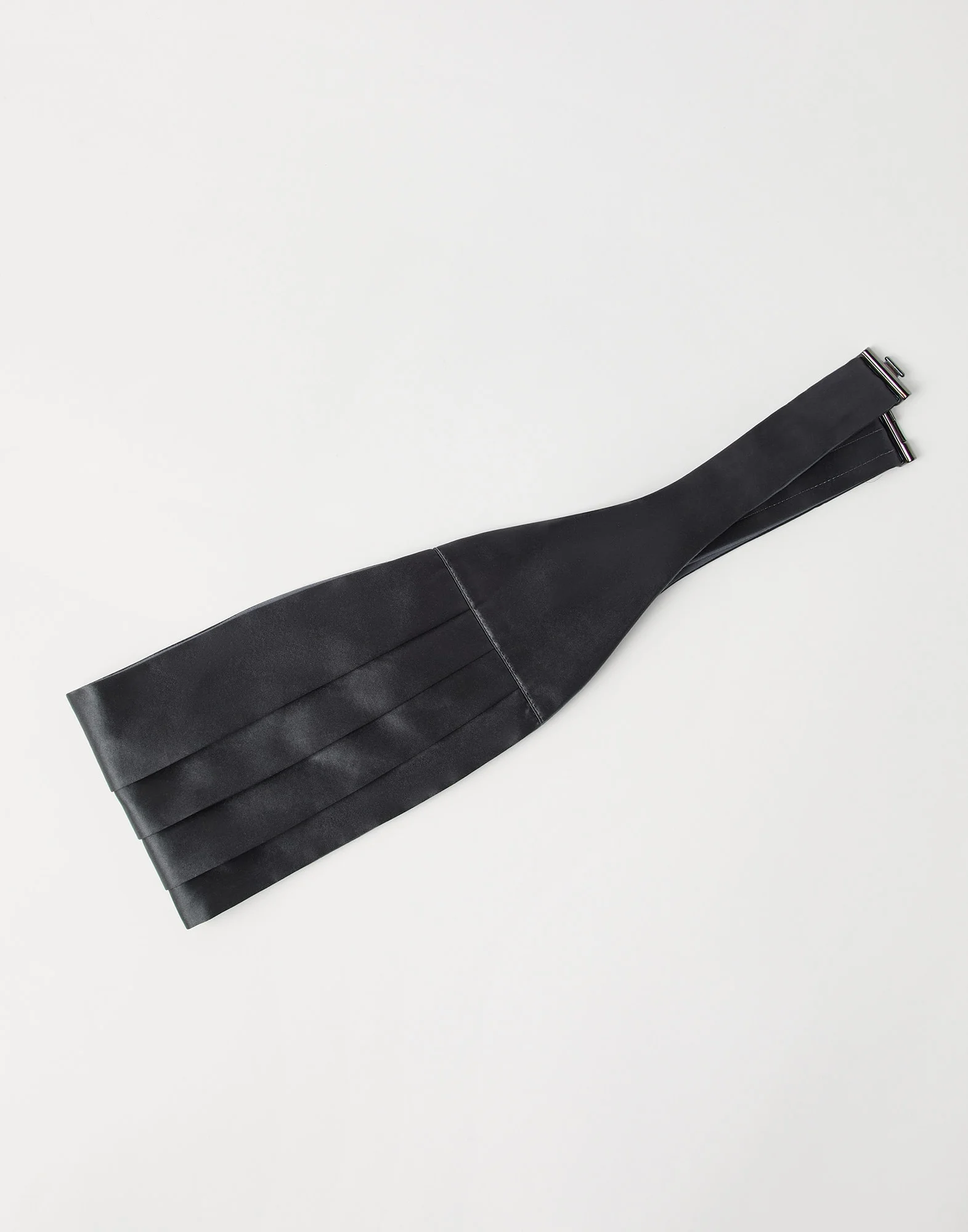 This cotton and silk satin cummerbund is an essential accessory for completing iconic and elegant tuxedos. Following tradition, its smooth and semi-glossy fabric is crafted with a three-layer pleated technique. An adjustable closure completes the accessory. MATERIALS The cotton and silk satin employs the same fabric that decorates the tuxedo lapels, with a smooth texture and slightly shiny effect. DETAILS Adjustable slide fastening 50% COTTON, 50% SILK