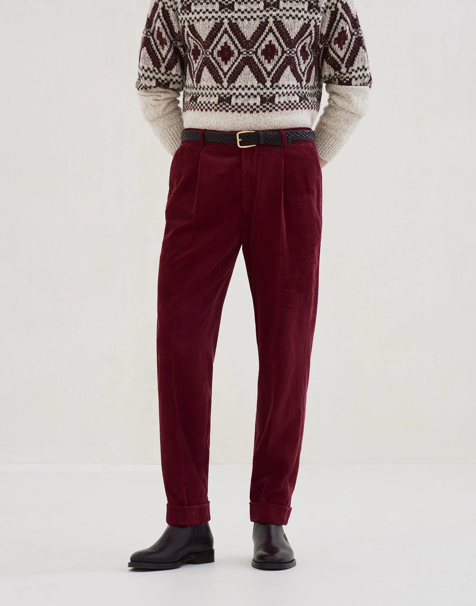Garment-dyed leisure fit trousers in cotton corduroy with pleat