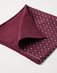 Artistic inspiration is paired with balanced elegance in this pure silk pocket square, enriched with a spotted pattern in the season’s colors. The solid color reverse side makes it a versatile accessory for different occasions. MATERIALS An elegant and refined accessory, the new pocket square completes the style of the blazers and suits in the collection with a modern touch. DETAILS Pocket square measures approx. 35 cm x 35 cm (13.78" x 13.78") 100% SILK
