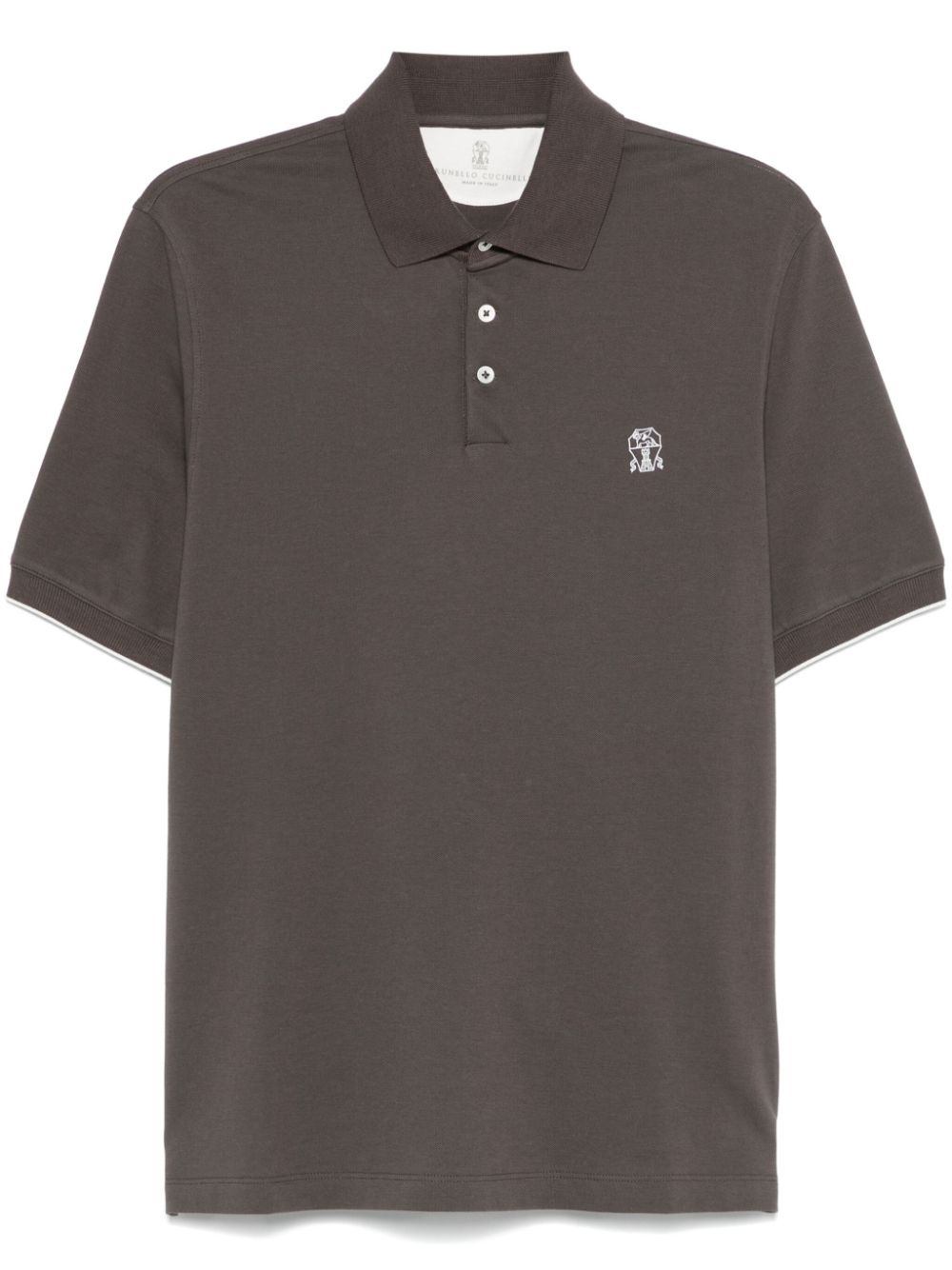 logo-print polo shirt Highlights - Taupe brown - Short front button fastening - Polo collar - Short sleeves - Short side slits Made in Italy Composition Cotton 100% SIZE & FIT Model measurements Height 6 ft 1 in(1.86 m) Bust/Chest 36.22 in(92 cm) Hips 37.79 in(96 cm) Waist 30.7 in(78 cm) FittingInformation Designed for a relaxed fit, this polo shirt offers comfort and movement Made from a midweight non-stretch fabric, this piece offers minimal elasticity when worn