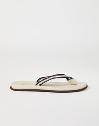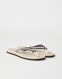 Practical and lightweight, these flip-flops are an elegant, modern interpretation of classic pool sandals. The footwear is characterized by the design with two contrast color stripes that stand out on the upper, while the tonal heraldic logo completes the style with a sophisticated detail. The TPU bottom guarantees lightness and comfort. MATERIALS Extremely lightweight, the footwear uses bands in TPU, a very light and durable plastic material that provides added comfort, paired with a TPU rubber bottom. DETAILS TPU rubber sole REAL LEATHER