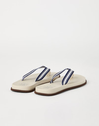 Practical and lightweight, these flip-flops are an elegant, modern interpretation of classic pool sandals. The footwear is characterized by the design with two contrast color stripes that stand out on the upper, while the tonal heraldic logo completes the style with a sophisticated detail. The TPU bottom guarantees lightness and comfort. MATERIALS Extremely lightweight, the footwear uses bands in TPU, a very light and durable plastic material that provides added comfort, paired with a TPU rubber bottom. DETAILS TPU rubber sole REAL LEATHER