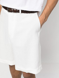 pressed-crease Bermuda shorts Highlights - White - Cotton/linen/flax - Belt loops - Front button and zip fastening - Knee-length - Two side slit pockets - Two rear welt pockets Made in Italy Composition Outer: Linen/Flax 100% Lining: Cotton 100%, Acetate 60%, Cupro 40% SIZE & FIT Model measurements Height 6 ft 2 in(1.87 m) Bust/Chest 38.18 in(97 cm) Hips 36.61 in(93 cm) Waist 29.13 in(74 cm) Measurement FRONT RISE 13.77 in(35 cm) WAIST 41.73 in(106 cm) FittingInformation Designed for a straight-leg fit, offering an unrestricted and comfortable fit over the leg Made from a midweight non-stretch fabric This piece fits true to size – take your usual size Washing instructions Dry Clean Only
