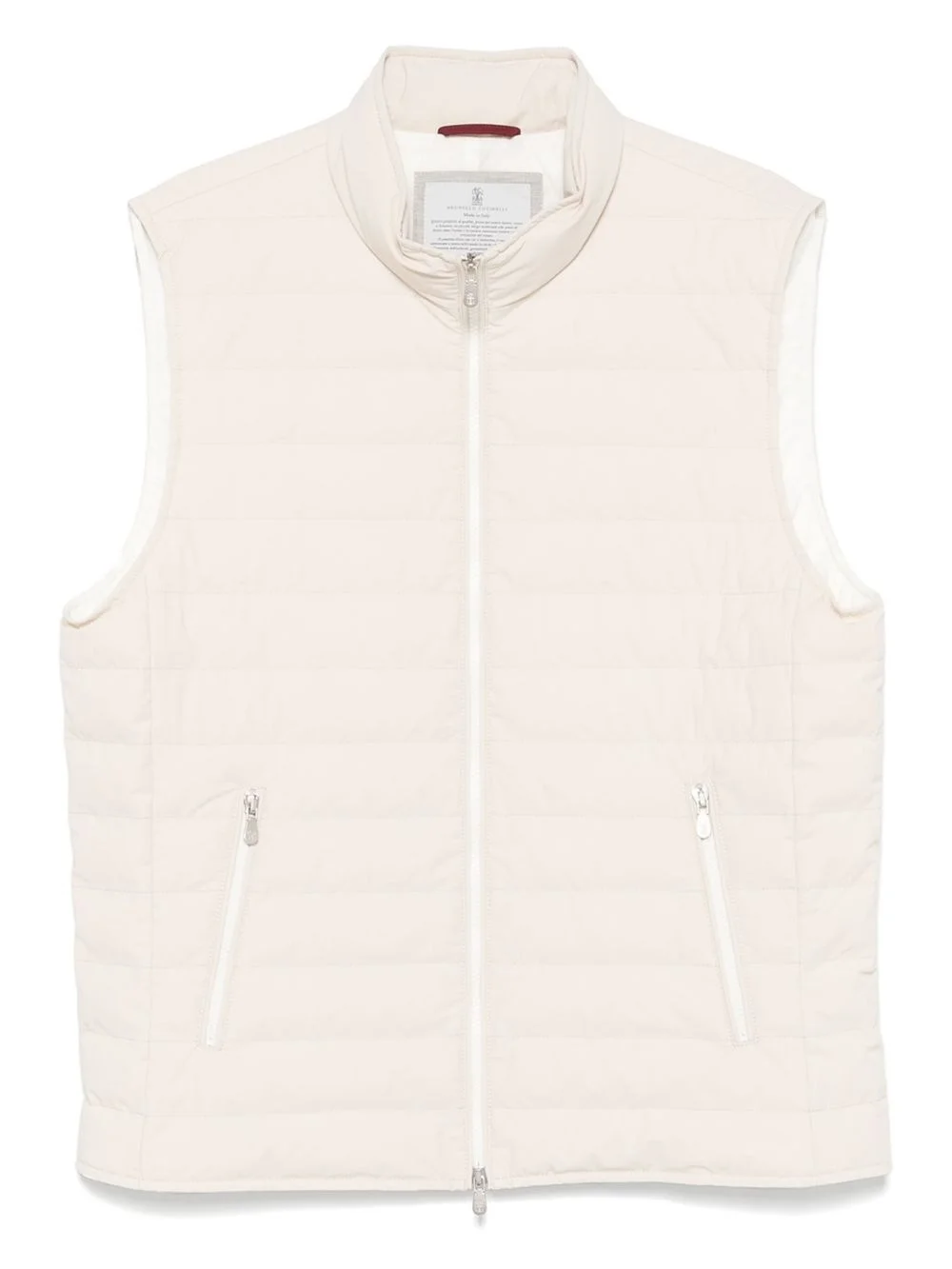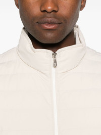 quilted gilet Highlights - Light beige - Front two-way zip fastening - Two side zip-fastening pockets - High neck - Sleeveless Made in Italy Composition Lining: Nylon 100%, Polyamide 100%, Goose Down 90%, Goose Feather 10% Outer: Polyamide 87%, Elastane 13% SIZE & FIT Model measurements Height 6 ft 2 in(1.88 m) Bust/Chest 36.61 in(93 cm) Hips 35.82 in(91 cm) Waist 27.95 in(71 cm) FittingInformation Designed for a relaxed fit, this piece allows for comfort and movement when worn Made from a padded non-stretch fabric, giving it no natural elasticity Washing instructions Dry Clean Only