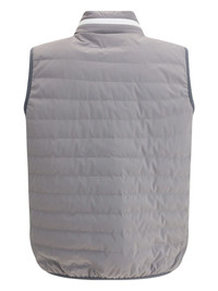 quilted gilet Highlights - Grey - Two-way zip fastening - Two side zip-fastening pockets - Embroidered logo at the chest - Stand-up collar Made in Italy Composition Polyester 100% Washing instructions Read Manufacturer Guidelines