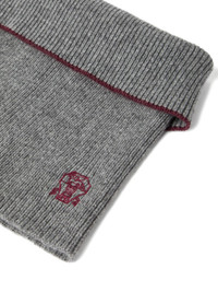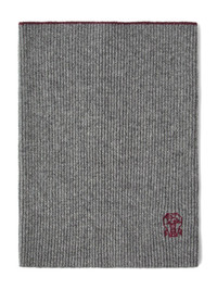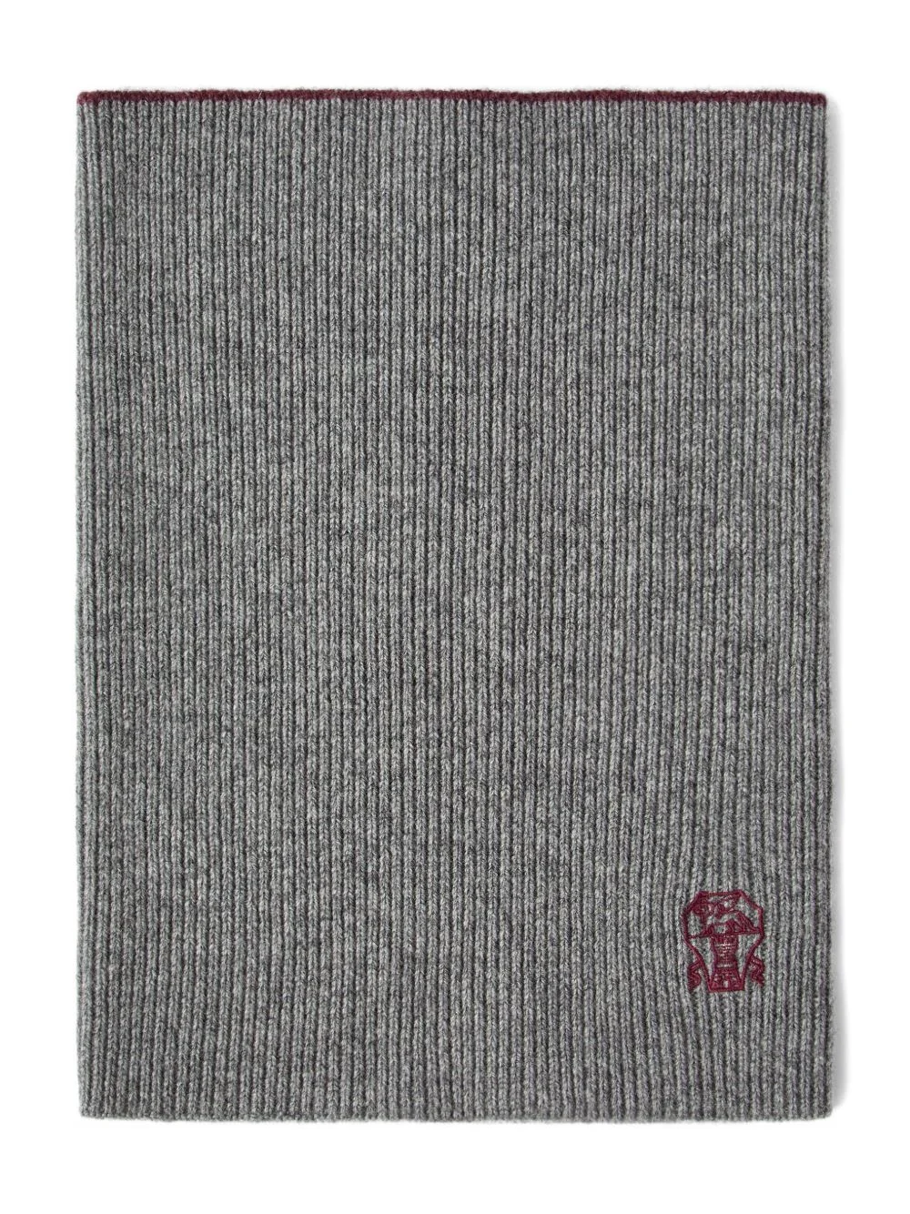 ribbed embroidered neck warmer Highlights - Grey - Ribbed knit - Embroidered logo - Cashmere - Square shape Made in Italy Composition Cashmere 100%