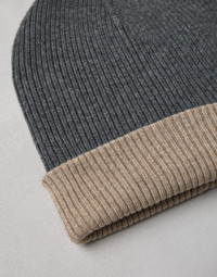 The iconic yarn of the Brunello Cucinelli collections enriches this new beanie, a must-have accessory that provides optimal protection in the winter. A refined cashmere rib knit is detailed in two of the season’s colors to complete an outfit with a touch of color. MATERIALS The noble cashmere fiber is characterized by an extreme fineness and also for its precious insulating qualities which guarantee warmth, providing coverage and lightness when worn. DETAILS Rib knit 100% CASHMERE