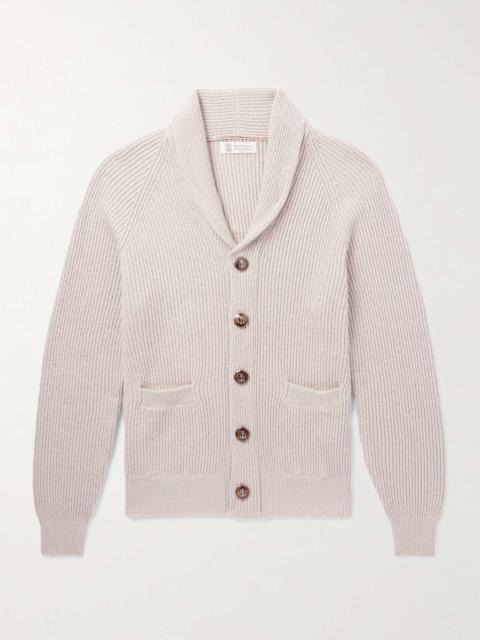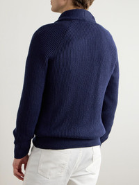 Shawl-Collar Ribbed Cotton Cardigan Navy