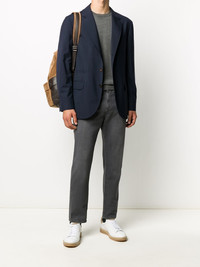 round neck jumper Highlights - Grey - Cashmere/silk - Round neck - Long sleeves - Elasticated cuffs - Ribbed hem Made in Italy Composition Cashmere 70%, Silk 30% SIZE & FIT Model measurements Height 6 ft 1 in(1.85 m) Bust/Chest 35.82 in(91 cm) Hips 37.79 in(96 cm) Waist 29.13 in(74 cm) FittingInformation This piece fits true to size. We recommend you get your regular size Cut for a relaxed fit Made with a mid-weight fabric Washing instructions Hand Wash