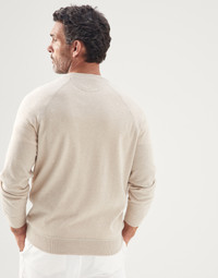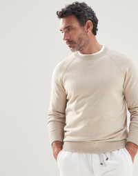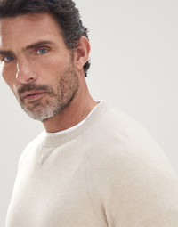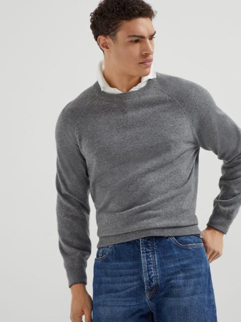 Sporty sweatshirts provide inspiration for the warm and lightweight pure cashmere crewneck sweater. Characteristic details such as the V-insert below the neckband and the raglan sleeves are paired with the sophisticated contrast color edge along the cuffs, a classic element of Brunello Cucinelli knitwear. The fit offers regular proportions in both the shoulder and chest. MATERIALS The noble cashmere fiber is characterized by an extreme fineness and also for its precious insulating qualities which guarantee warmth, providing coverage and lightness when worn. DETAILS Crew-neck in rib knit with triangle Raglan sleeve Rib knit cuffs and bottom band Plain stitch 100% CASHMERE