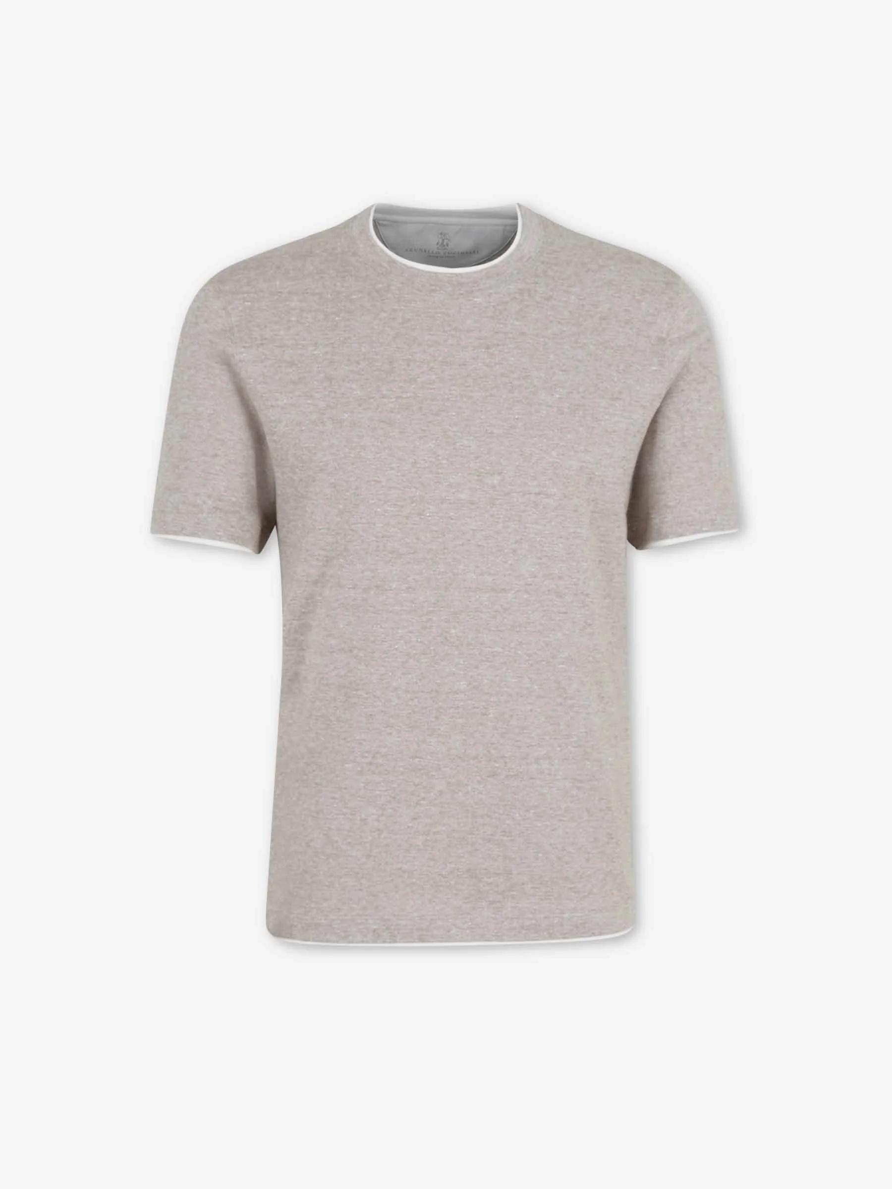 SKU: 553-004661 02 BRAND ID: MW8357427 T-shirt By Brunello Cucinelli • Relaxed cut • Made from linen and cotton fabric • Double-layered collar, sleeves and hem • Round neck • Short sleeve • Composition: 57% linen, 43% cotton • Made in: Italy