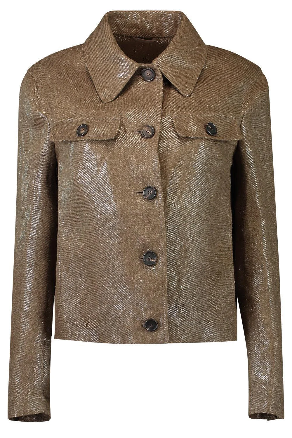 Shiny Button Front Jacket - Brown Silver