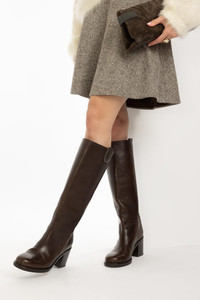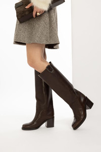 DETAILS AND INSIGHT Brunello Cucinelli shiny detail city boot in chocolate. Leather Heel Height: Made In Italy Style MZORC3110-C8279