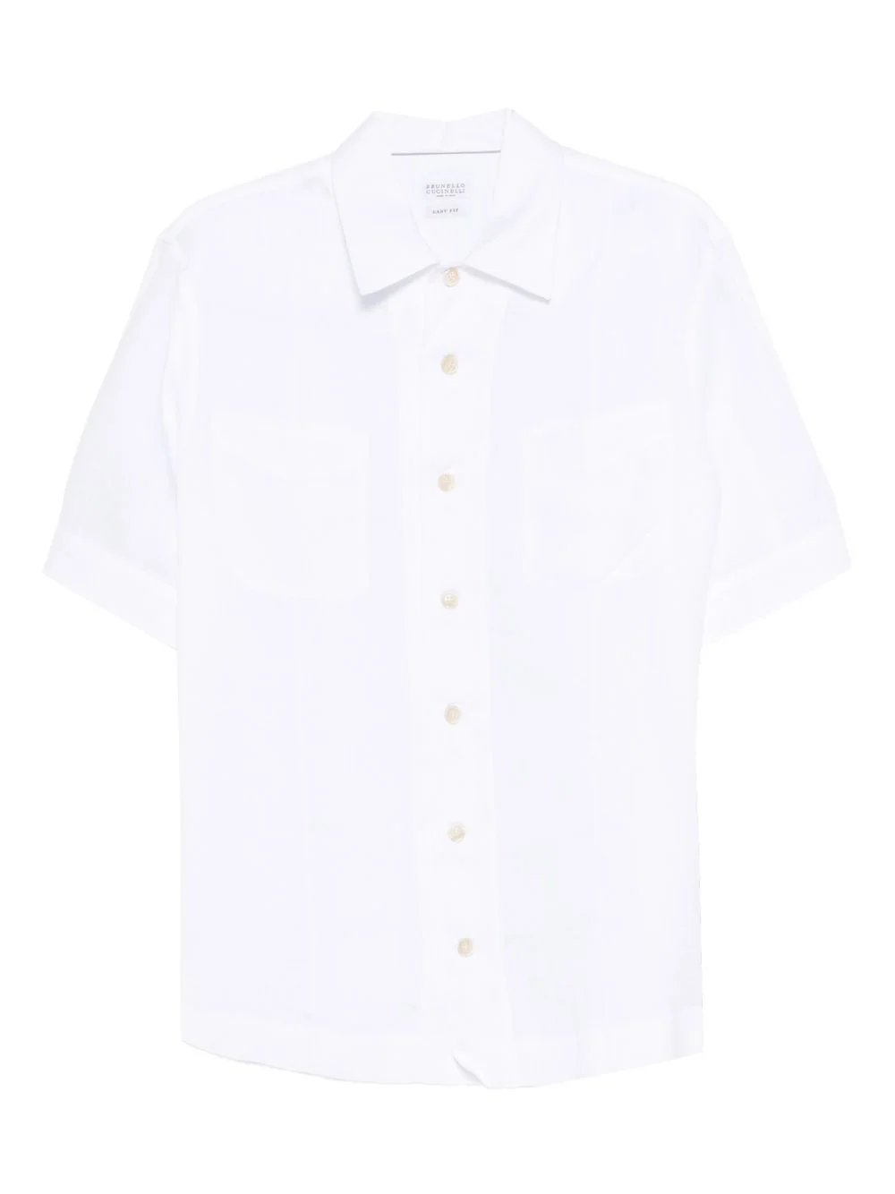chest-pocket short-sleeve shirt Highlights - White - Chest pockets - Button fastening - Short sleeves Made in Italy Composition Linen/Flax 100% SIZE & FIT Model measurements Height 6 ft 1 in(1.86 m) Bust/Chest 35.43 in(90 cm) Hips 35.03 in(89 cm) Waist 29.13 in(74 cm) Washing instructions Machine Wash
