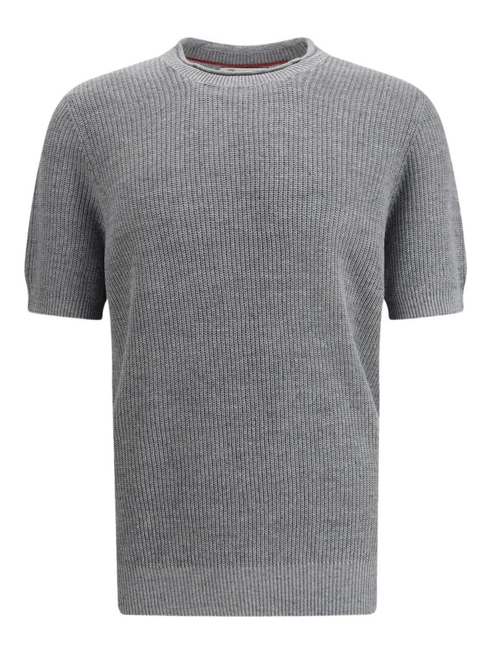 short-sleeve knitted T-shirt Highlights - Grey - Ribbed knit - Short sleeve - Crew neck Made in Italy Composition Linen/Flax 70%, Cotton 30% Washing instructions Read Manufacturer Guidelines