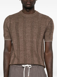 ribbed short-sleeve T-shirt Highlights - Hazelnut brown - Ribbed knit - Round neck - Short sleeves - Straight hem Made in Italy Composition Linen/Flax 77%, Cotton 23% Washing instructions Hand Wash