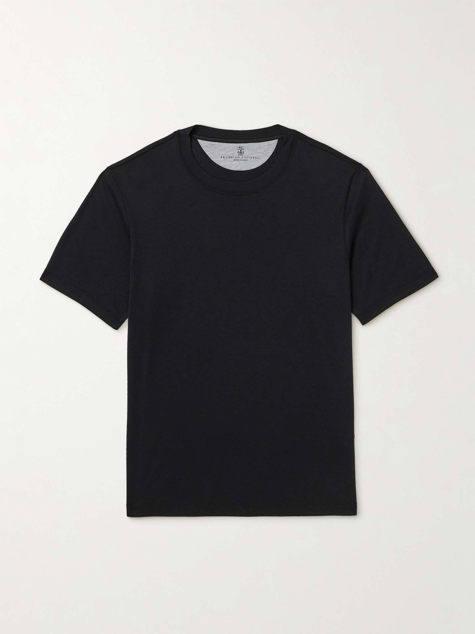 Textile excellence is central to Brunello Cucinelli, so even its wardrobe basics are made from carefully selected fabrics. This T-shirt is cut from silk and cotton-blend jersey, prized for its soft handle and cool finish. Extend its lifespan by laundering gently. Size & Fit - Fits true to size. Take your normal size - Designed for a regular fit - Mid-weight, slightly stretchy fabric - Model is shown wearing a M - Model measures: chest 38"/ 96cm, height 6'2"/ 188cm Details & Care - Black silk and cotton-blend jersey - 62% silk, 38% cotton; trim: 100% cotton - Machine wash
