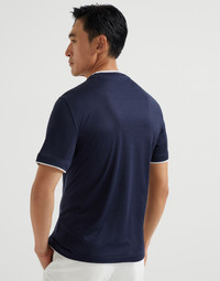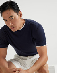 Casual details and elegant fabrics enrich the classic style of this crew-neck T-shirt. The lightweight silk and cotton jersey’s smooth texture is paired with contrasting inserts that stand out on the edges of the neckline and sleeves to create a faux-layered effect with a sporty feel. The silhouette features regular proportions. MATERIALS The smooth, lightweight jersey fabric combines the qualities of the noble silk fibers, which gives a slight shiny effect to the fabric, with the compact and fluid appearance of cotton. DETAILS Crew-neck Regular fit 62% SILK, 38% COTTON