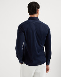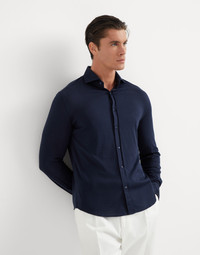 Silk and cotton lightweight jersey shirt with spead collar