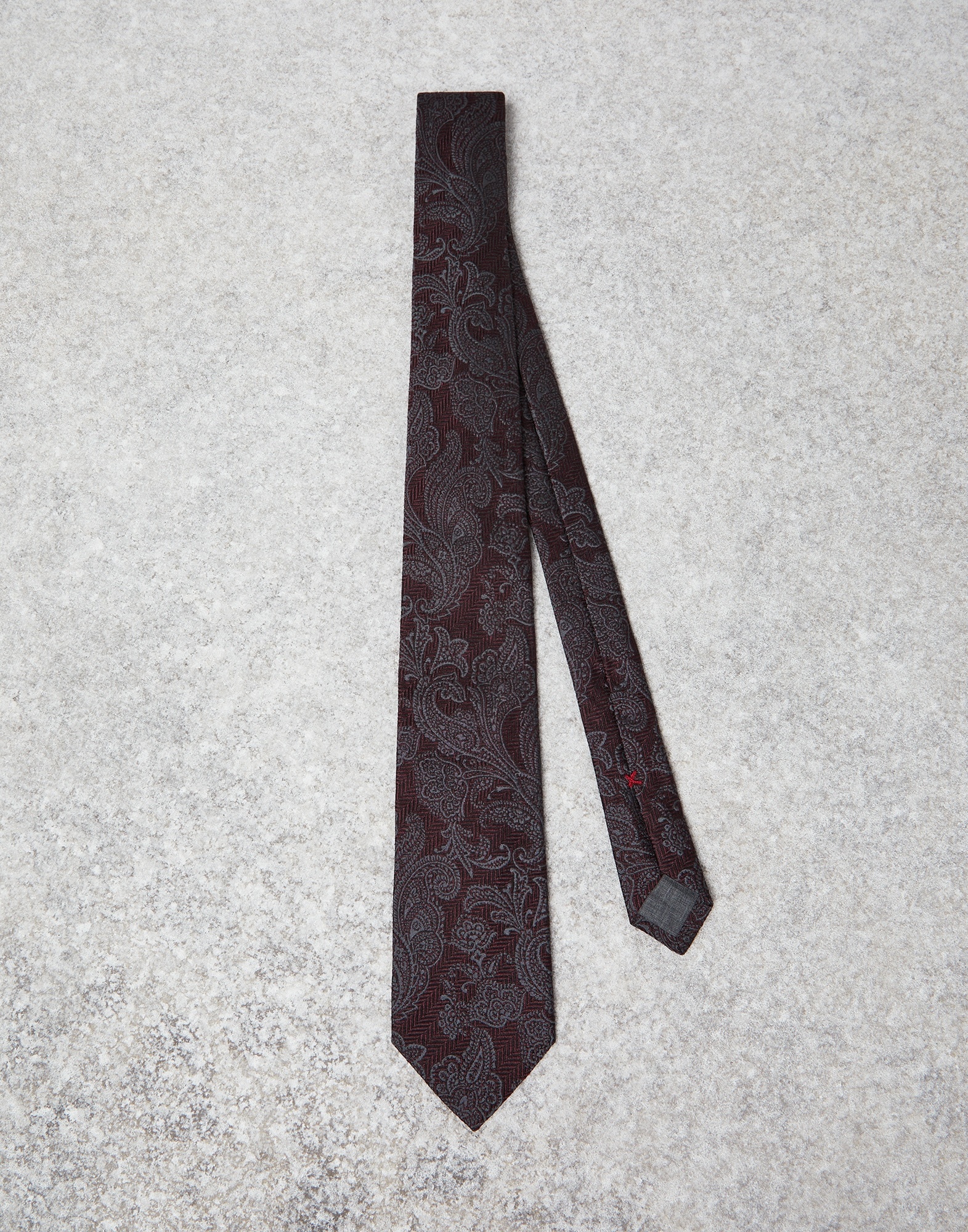 Delivered in the season’s colors, the iconic Paisley design defines the style of this silk and wool necktie, a must-have accessory to complement the most classic outfits. MATERIALS A timeless accessory, this elegant necktie is perfect for completing looks with a personal touch. DETAILS Length approx. 150 cm 82% SILK, 18% VIRGIN WOOL