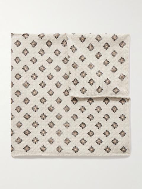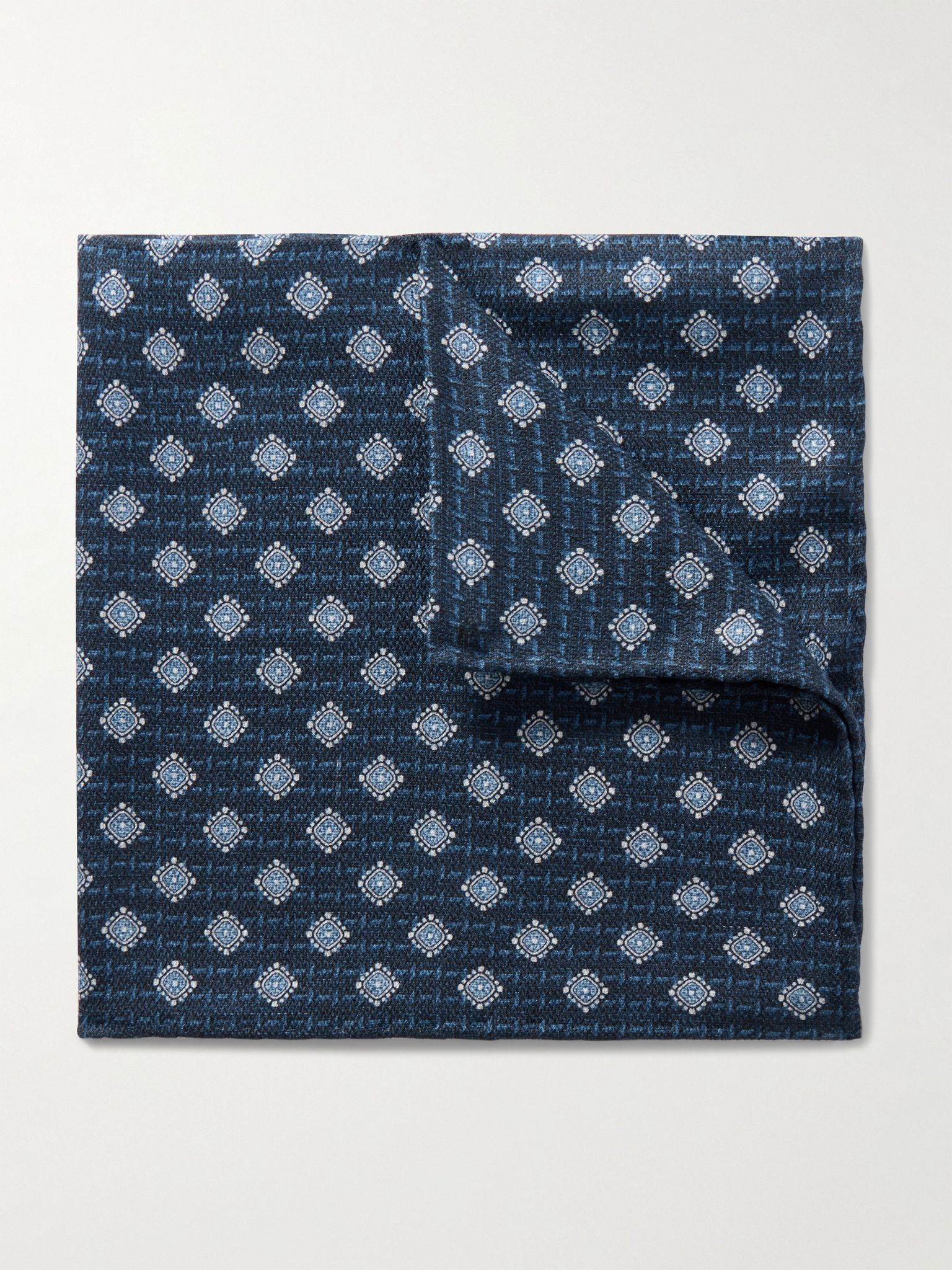 The colours in a pocket square should pick up, but not match, your suit or tie. Brunello Cucinelli's style comes in shades of blue and white, so navy and grey tailoring would work. It's been made in Solomeo, Italy from pure silk and is patterned with a classic geometric motif. Details & Care - Navy, blue and white silk-jacquard - 100% silk - Dry clean