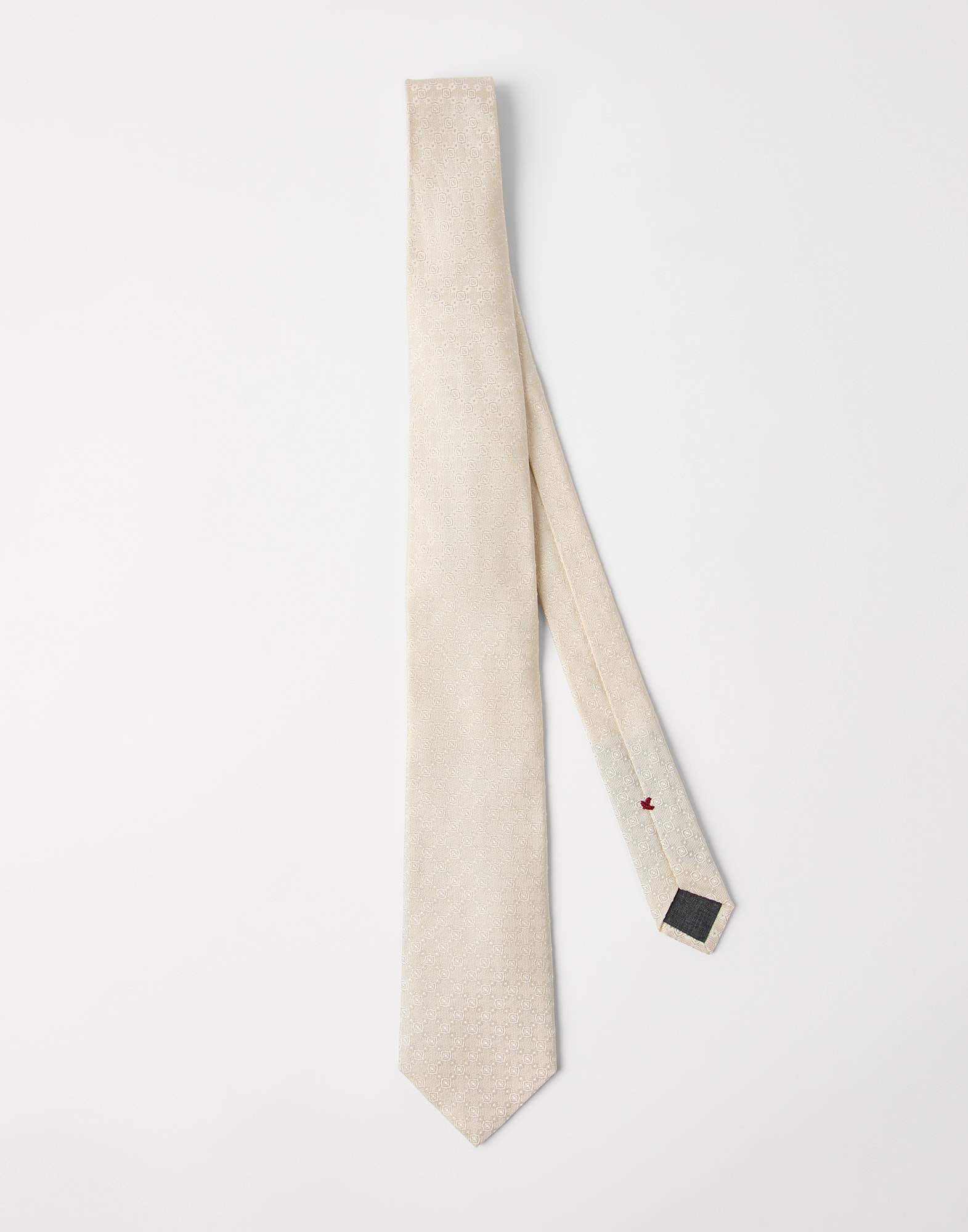The natural sheen of this silk necktie is paired with an elegant jacquard pattern in the season’s delicate colors, adding a slight color contrast to the accessory. MATERIALS A timeless accessory, this elegant necktie is perfect for completing looks with a personal touch. DETAILS The maximum width is about 7.5 cm (3") The length measures about 147 cm (57.9") 100% SILK