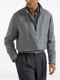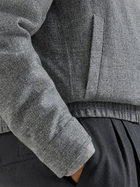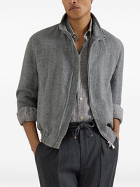 stand collar hopsack outerwear jacket Highlights - Medium grey - Hopsack texture - Stand collar - Zip fastening - Welt pocket Made in Italy Composition Silk 49%, Eco Linen 31%, Wool 20% Washing instructions Specialist Cleaning