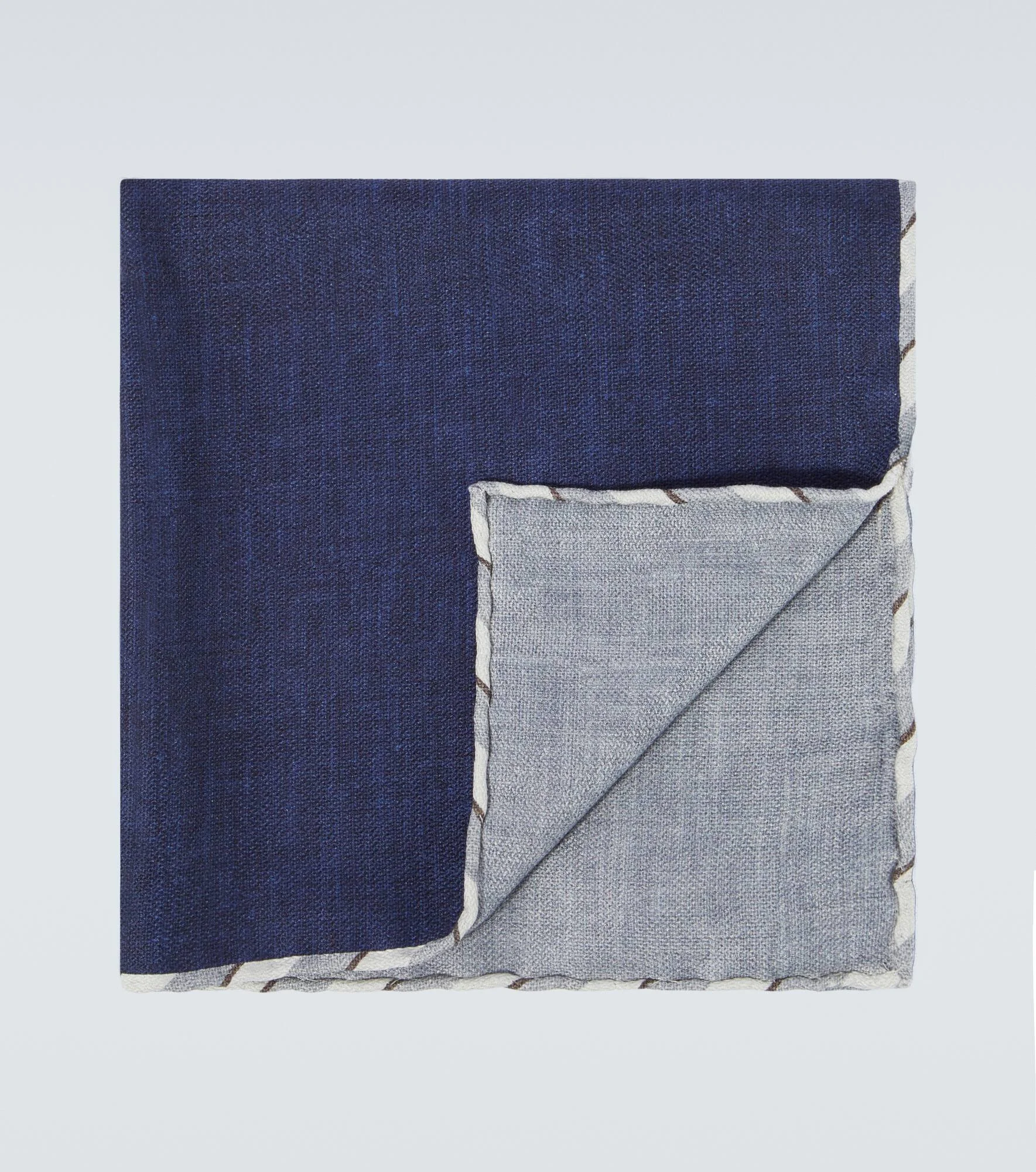 Brunello Cucinelli's designs are created in Solomeo, a medieval hamlet whose art and traditions are woven into the house's every fiber. This pocket square is made from pure silk in a navy hue with striped trims. Product Details - Material: 100% silk - Care instructions: dry clean - Made in Italy - Designer color name: Navy - Item color: blue - Item number: P01138540 Size & Fit - Length 37cm-14.5" - Width 35cm-14"