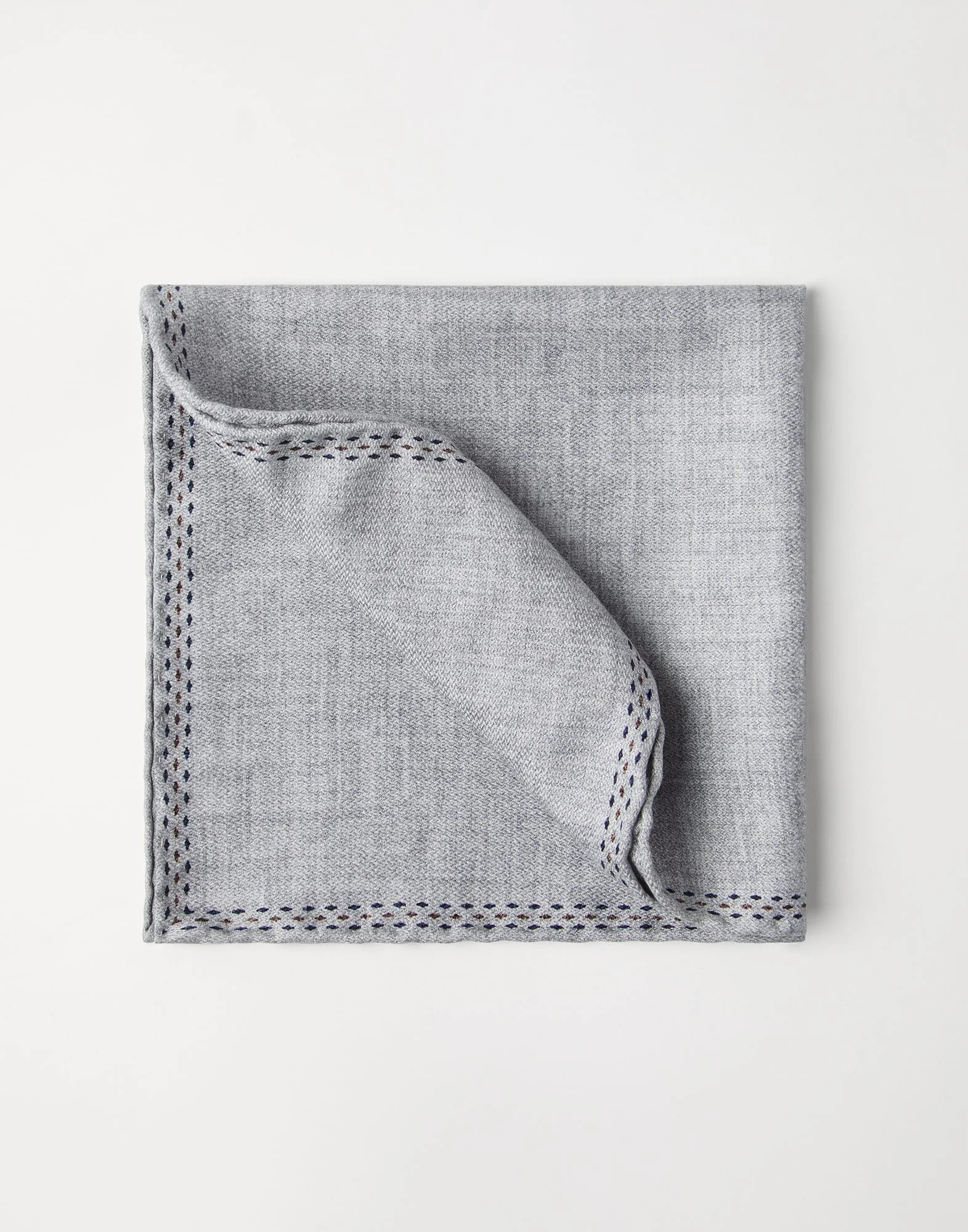 The pure silk fabric’s melange effect is enriched with a heraldic logo that stands out in the corner of this pocket square. MATERIALS An elegant and refined accessory, the new pocket square completes the style of the blazers and suits in the collection with a modern touch. DETAILS Pocket square measures approx. 35 cm (13,78") x 35 cm (13,78") 100% SILK