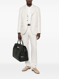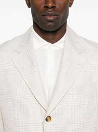 single-breast checked suit Highlights - Off-white - Front button fastening - Two side flap pockets - Long sleeves - Check pattern Made in Italy Composition Outer: Linen/Flax 74%, Wool 24%, Silk 2% Lining: Cupro 100% SIZE & FIT Model measurements Height 6 ft 0 in(1.84 m) Bust/Chest 35.82 in(91 cm) Hips 37 in(94 cm) Waist 28.34 in(72 cm) FittingInformation Tailored for a slim fit, offering a comfortable fit that sits just away from the body The vented hem offers movement at the rear Made from a midweight non-stretch fabric