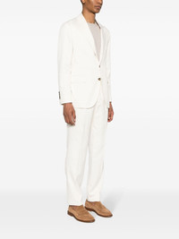 single-breasted silk suit Highlights - Off-white - Silk - Twill weave Made in Italy Composition Lining: Cupro 100%, Viscose 100%, Cotton 100% Outer: Silk 100% SIZE & FIT Model measurements Height 6 ft 2 in(1.87 m) Bust/Chest 36.22 in(92 cm) Hips 37 in(94 cm) Waist 27.95 in(71 cm) FittingInformation Tailored for a slim fit, offering a comfortable fit that sits just away from the body The vented hem offers movement at the rear Made from a midweight non-stretch fabric This piece fits true to size – take your usual size