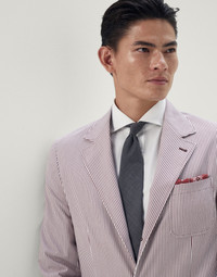 Classical canons and contemporary influences epitomize the new selection, where every element contributes to building captivating and dynamic garments that are capable of corresponding to any occasion. The deconstructed blazer, distinctive to the Brunello Cucinelli brand, is neat around the chest with slightly broader yet unpadded shoulders. MATERIALS Classical canons and contemporary influences epitomize the new selection, where every element contributes to building captivating and dynamic garments that are capable of corresponding to any occasion. The deconstructed blazer, distinctive to the Brunello Cucinelli brand, is neat around the chest with slightly broader yet unpadded shoulders. DETAILS 3-roll-2 fastening Patch pockets, ticket pocket and patch chest pocket Buttons at cuffs Cupro half lining Two interior pockets with button closure and pen holder Drop 7 Double back vent 98% COTTON, 2% ELASTANE