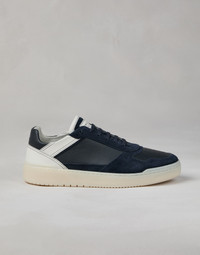 Semi-polished calfskin and washed suede basket sneakers