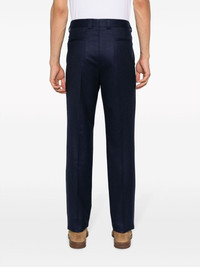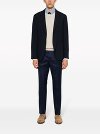 slim-cut chino trousers Highlights - Ink blue - Virgin wool/cotton - Pleat detailing - Slim cut - Mid-rise - Belt loops - Off-centre front button fastening - Two side inset pockets - Two rear jetted pockets Made in Italy Composition Outer: Virgin Wool 100% Lining: Viscose 100%, Cotton 100%, Acetate 60%, Cupro 40% SIZE & FIT Model measurements Height 6 ft 2 in(1.87 m) Bust/Chest 36.41 in(92.5 cm) Hips 35.43 in(90 cm) Waist 29.52 in(75 cm) FittingInformation Designed for a slim fit, offering a comfortable fit that sits just away from the leg Made from a midweight non-stretch fabric This piece fits true to size – take your usual size Washing instructions Dry Clean Only